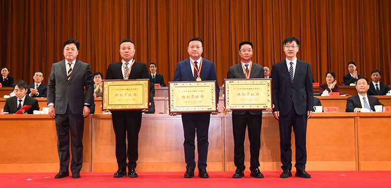 總經(jīng)理丁志鴻(右二)上臺領(lǐng)取2024年度溧陽市特別貢獻(xiàn)獎
