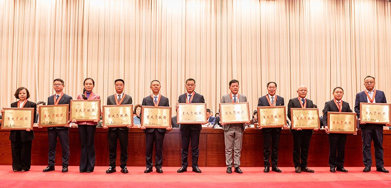 總經(jīng)理丁志鴻(左四)上臺領(lǐng)取2024年度常州市重大貢獻(xiàn)獎