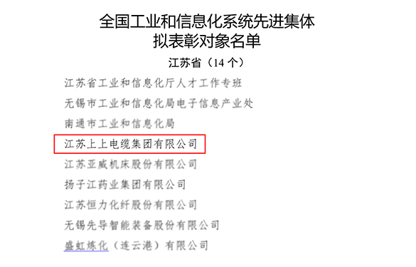 近日,國家工業(yè)和信息化部公布了“全國工業(yè)和信息化系統(tǒng)先進集體”擬表彰名單,江蘇上上電纜集團憑借在技術(shù)創(chuàng)新、智能制造及產(chǎn)業(yè)升級方面的卓越表現(xiàn)成功入選。這是繼上上獲評“綠色工廠”、“綠色供應(yīng)鏈管理企業(yè)”之后再次獲得工業(yè)和信息化系統(tǒng)的又一重量級榮譽,彰顯了線纜行業(yè)高質(zhì)量發(fā)展的強勁實力。